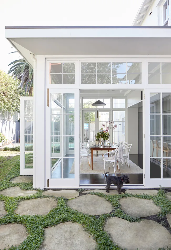 “As our home looks out onto the green belt, a wall of French doors allows the dappled sunlight to stream in,” explains the owner of the home.