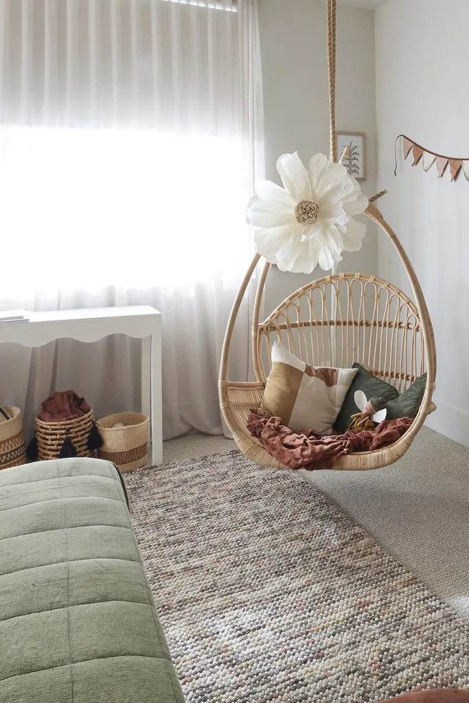 Judge Shaynna Blaze loved the hanging rattan chair Steph and Gian included in their kids’ bedroom. She said the chair added that “little bit of sophistication in that beautiful, fun, elegant, childish manner.” The chair comes with sisal rope to hang the chair in your space at any height.
