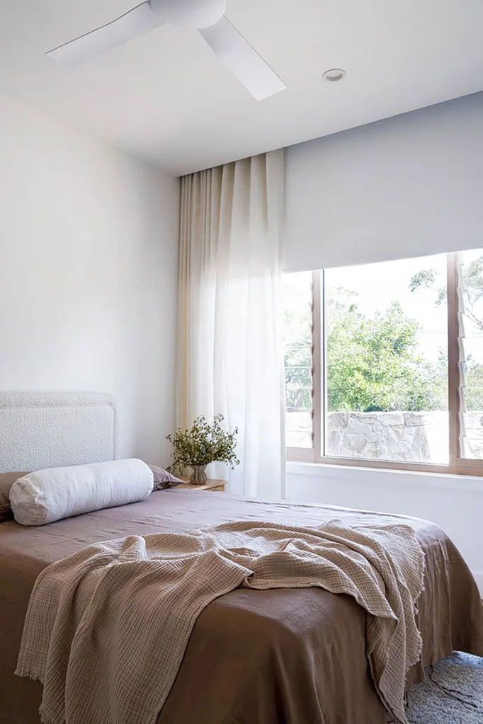 Another simple change you can make to a bedroom is to replace the light covers. Swap out stock standard flush mount dome lights for a stylish shade. It’s easy to find DIY batten fix ceiling lights from about $50 which makes this an affordable and effective bedroom update.
