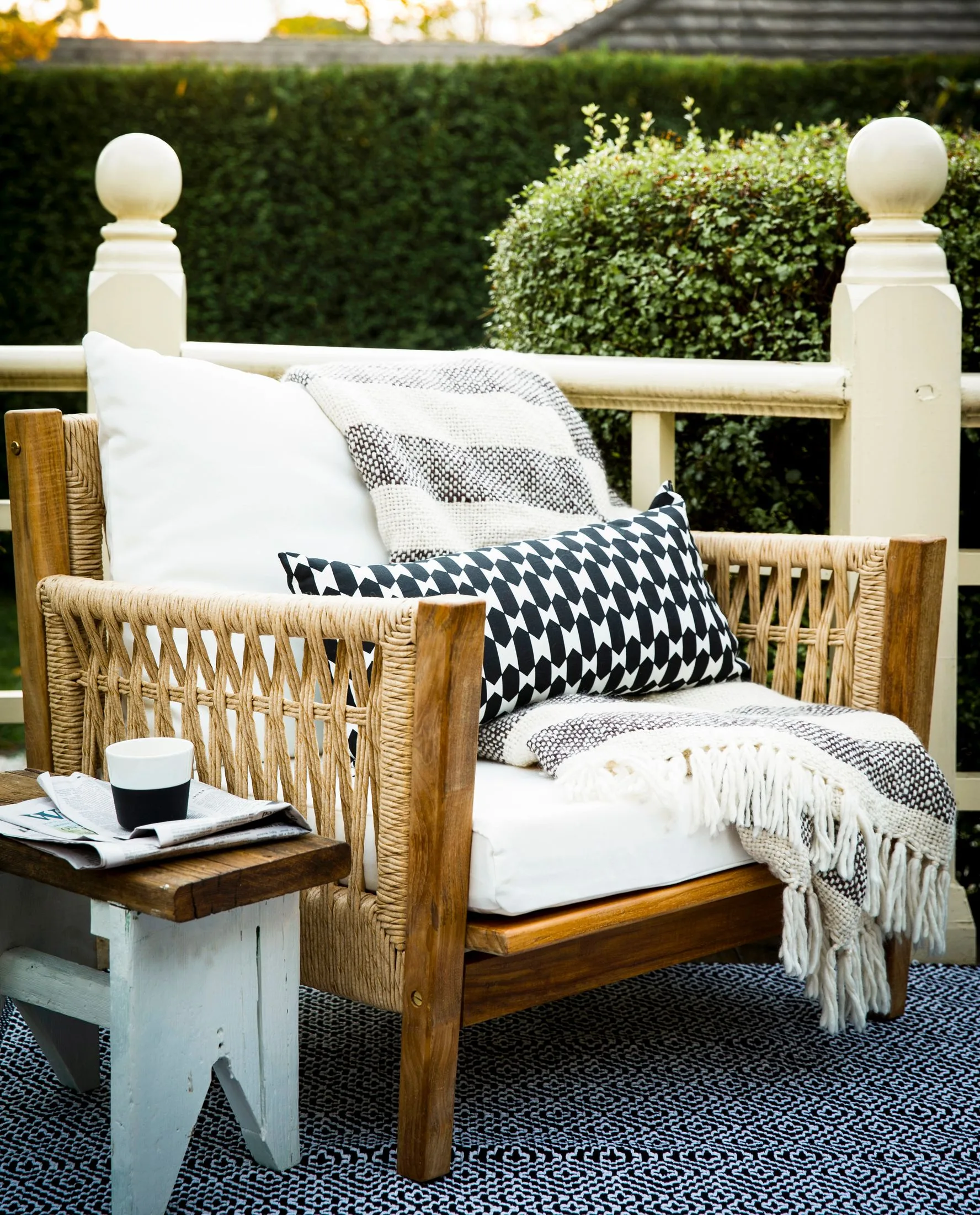 Juxtapose luscious accessories against timeworn furniture and place cosy rugs underfoot to see your deck through the chill.